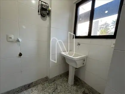 Sala ampla para dois ambientes, Varanda, Cozinha com armários, Área de serviço independente, Banho de empregada, Banheiro social com box e armário, 2 quartos com armários sendo 1 suíte.