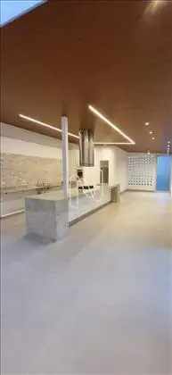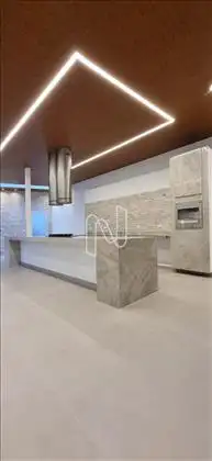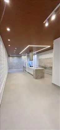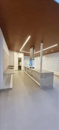 * Ampla sala com teto rebaixado e luminárias;